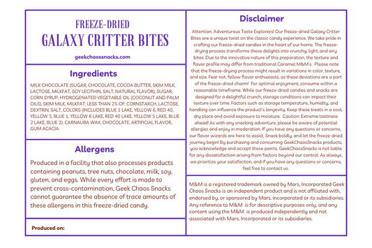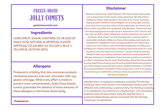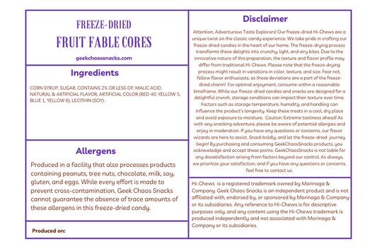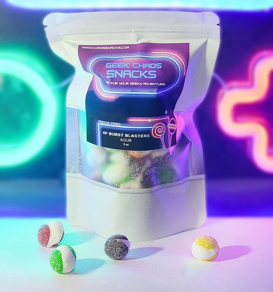 Welcome to Geek Chaos Snacks, where flavor meets fantasy! Immerse yourself in a world of freeze-dried delights that transcend the ordinary. They are carefully crafted for the geek and gamer palate. Our snacks aren't just bites; they're power-ups for your tastebuds. Join the chaos and level up your snacks! Click "Shop All" below to see all our goodies.